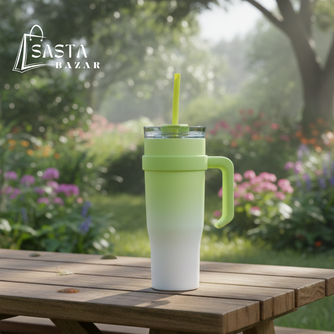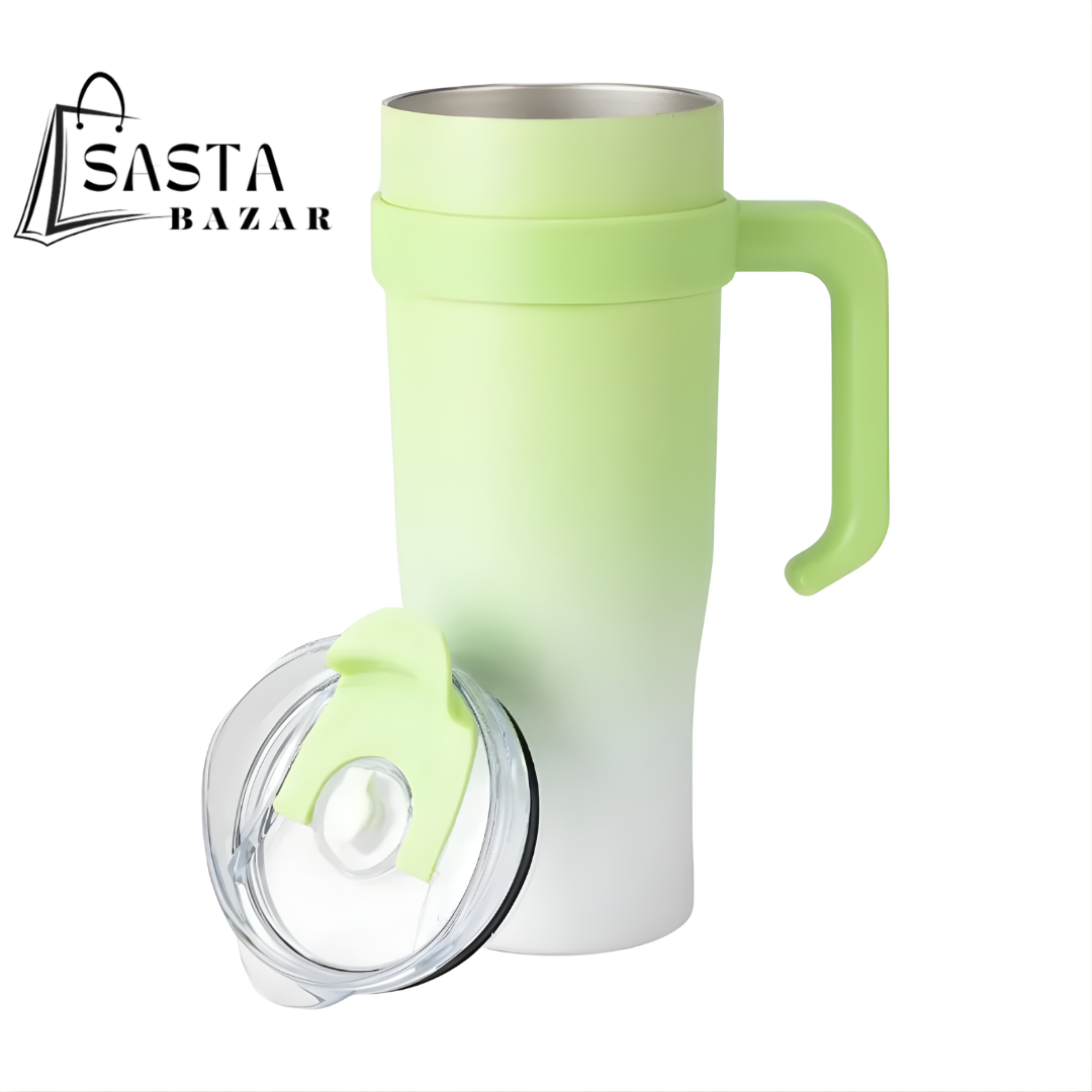 Crafted with durable, BPA-free material, the tumbler is lightweight yet strong enough to handle everyday use. The ergonomic handle provides a comfortable grip, while the transparent lid ensures a spill-free experience. Whether it’s coffee, juice, smoothies, or water, this dual-shade tumbler makes every drink feel refreshing and stylish. A must-have for those who love trendy, practical, and eco-friendly drinkware.
